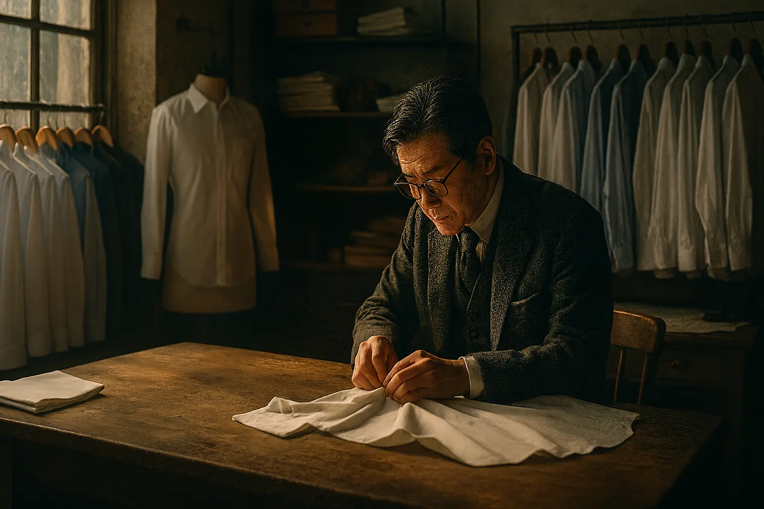 私たちのスーツとシャツは、国内工房にて日本人職人が仕立てます。緻密な縫製、丁寧なアイロンワーク、日本人体型に最適化されたパターン。ヨーロッパの美意識と日本の職人技を組み合わせた、ハイブリッドな着心地をお楽しみください。
