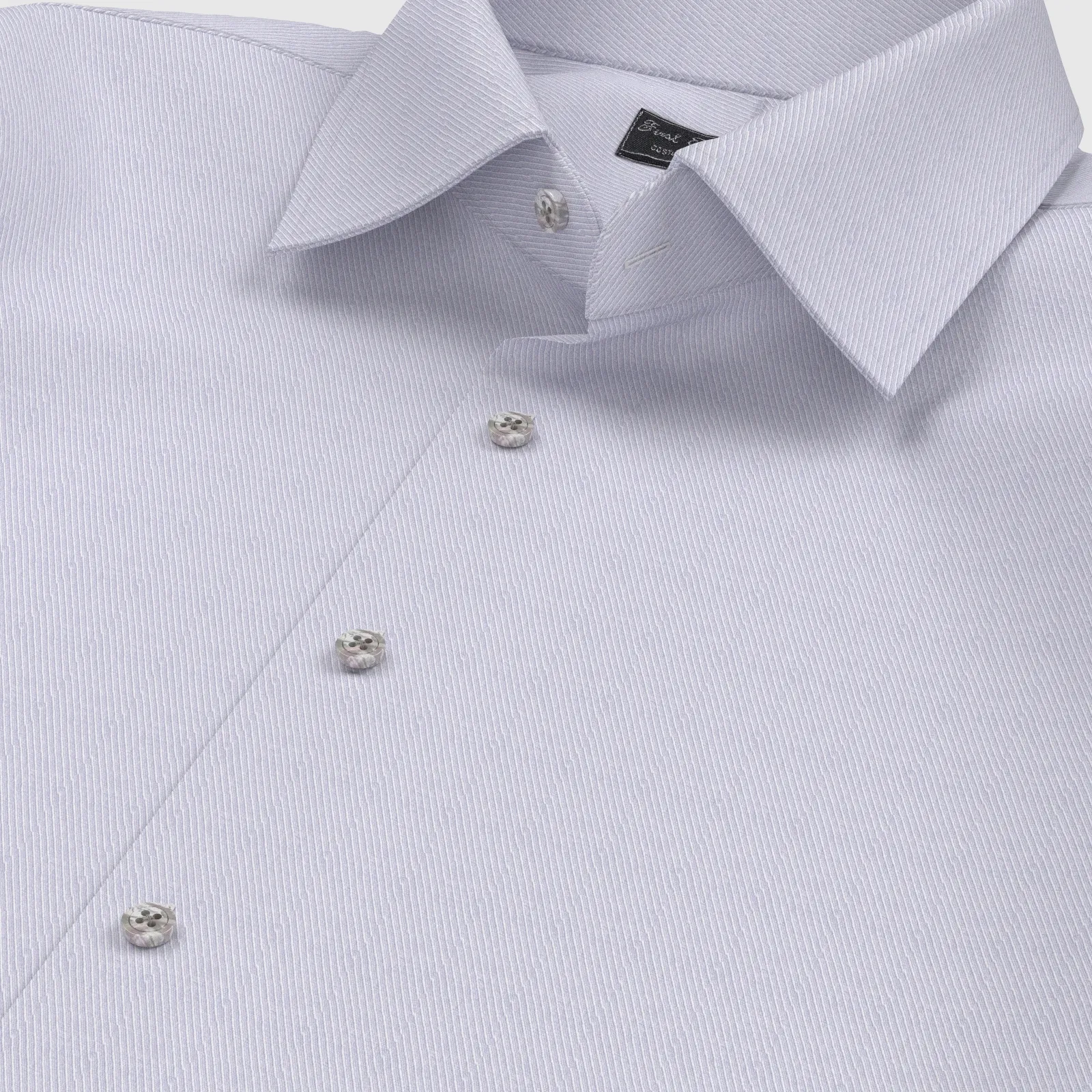 詳細光沢感のあるラベンダー綾織り(細かなツイル)の綿100%イージーケア素材です。家庭洗濯+軽いアイロンがけですっきり・きっちりと着こなせる忙しいビジネスマンにぴったりの素材です。肌触りも綿100%の風合いを損なわない着心地です。