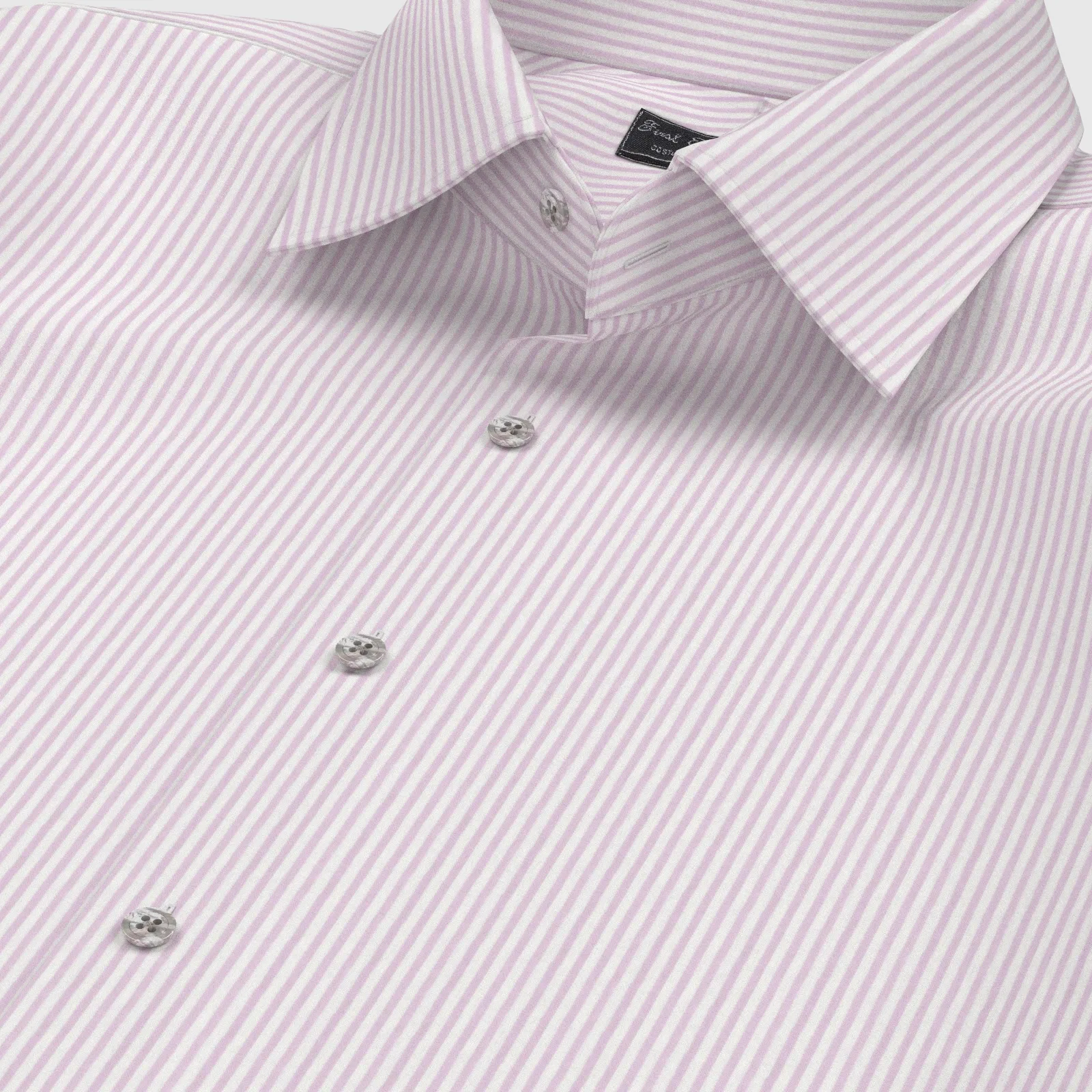詳細上質な国産の形態安定TC(綿×ポリエステル)素材のピンク・ロンドンストライプ生地となります。