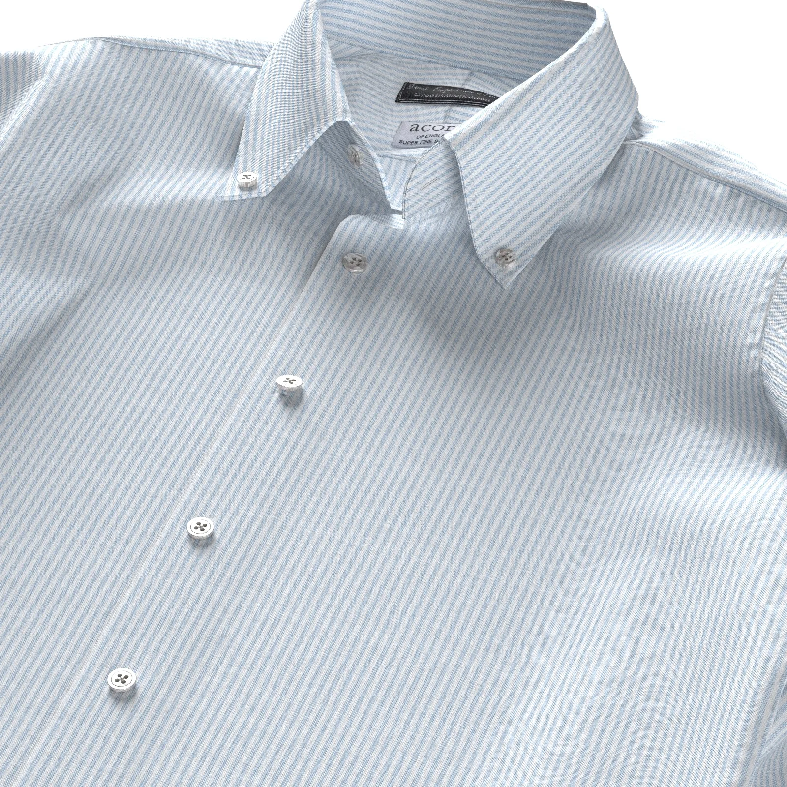 詳細英国の伝統的なファブリックを多く生産しているエイコーンのサックスストライプ・オックスフォード生地です。
