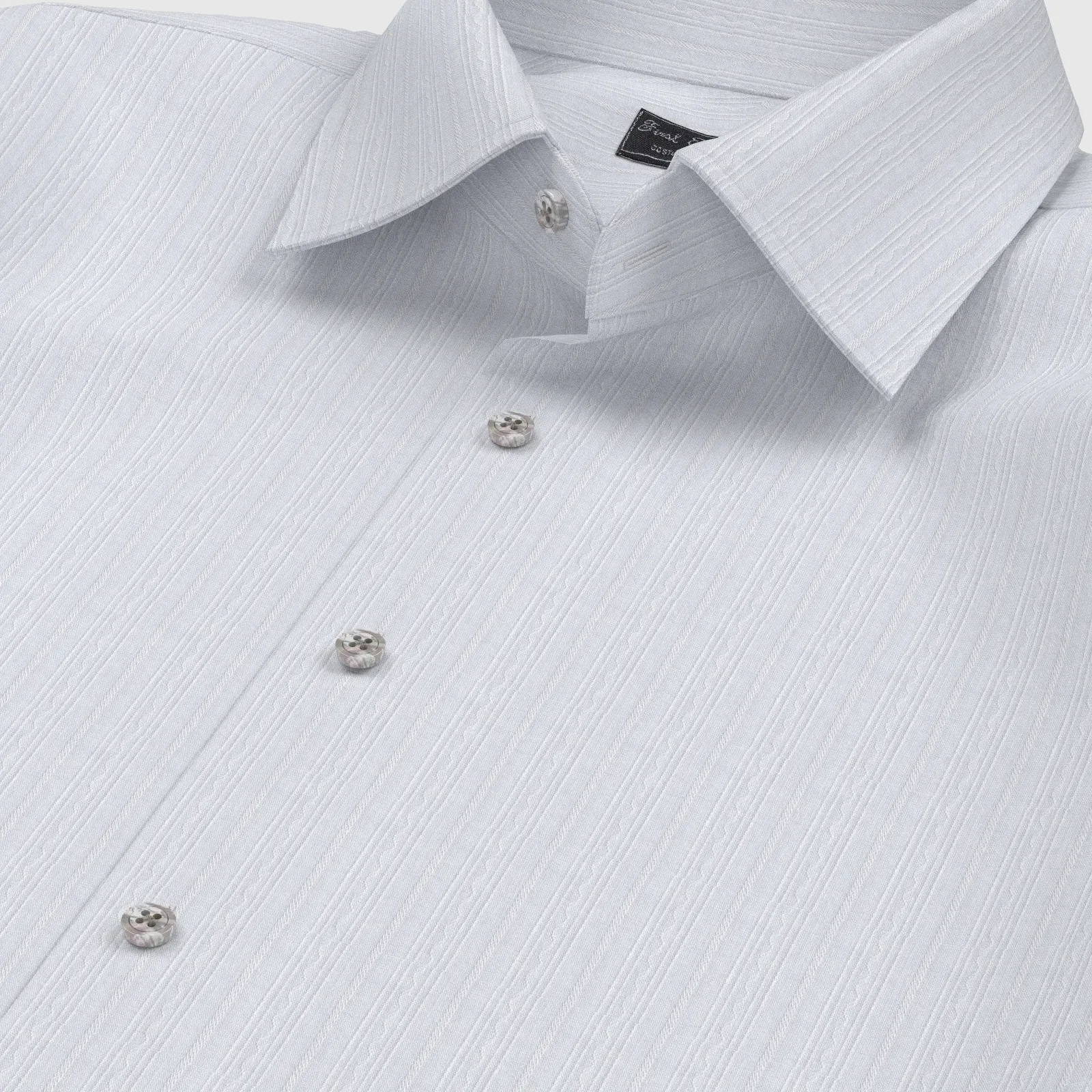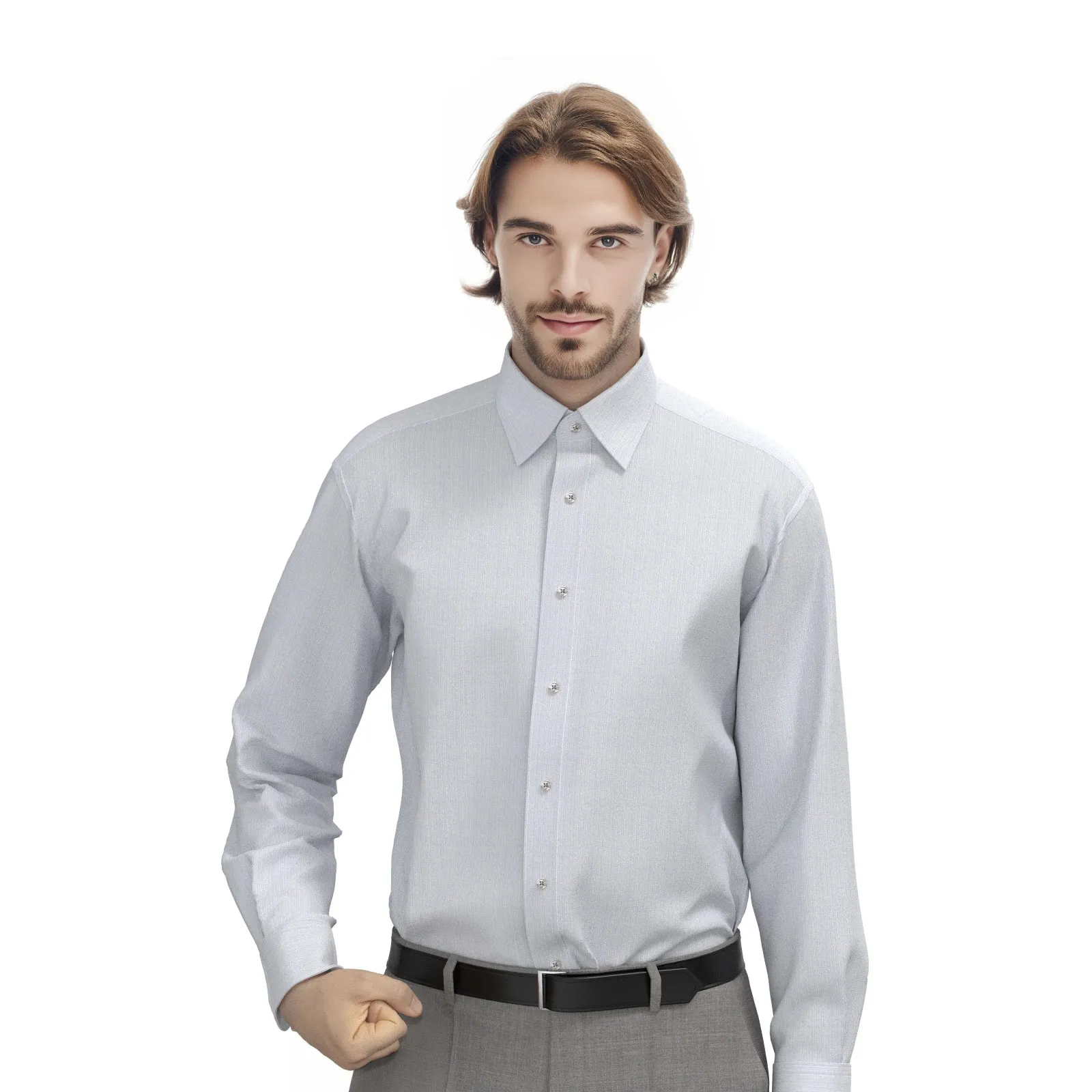 詳細ベーシックでメンテナンスフリーなグレーのドビーストライプ生地です。