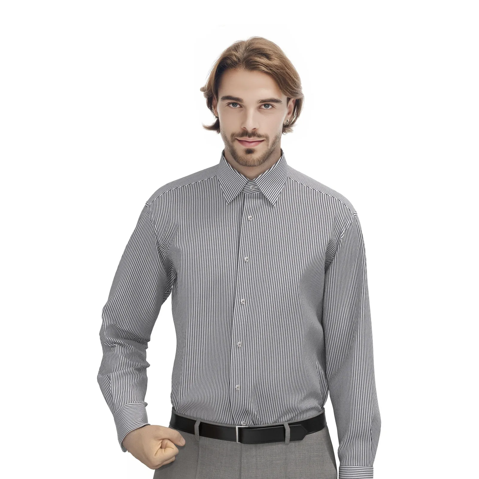 WRINKLE FREE TC ブラック ロンドンストライプ(Y100982)