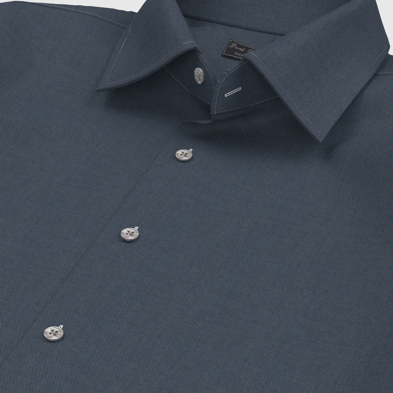 詳細形態安定のデニムライクなネイビー・ツイル生地です。