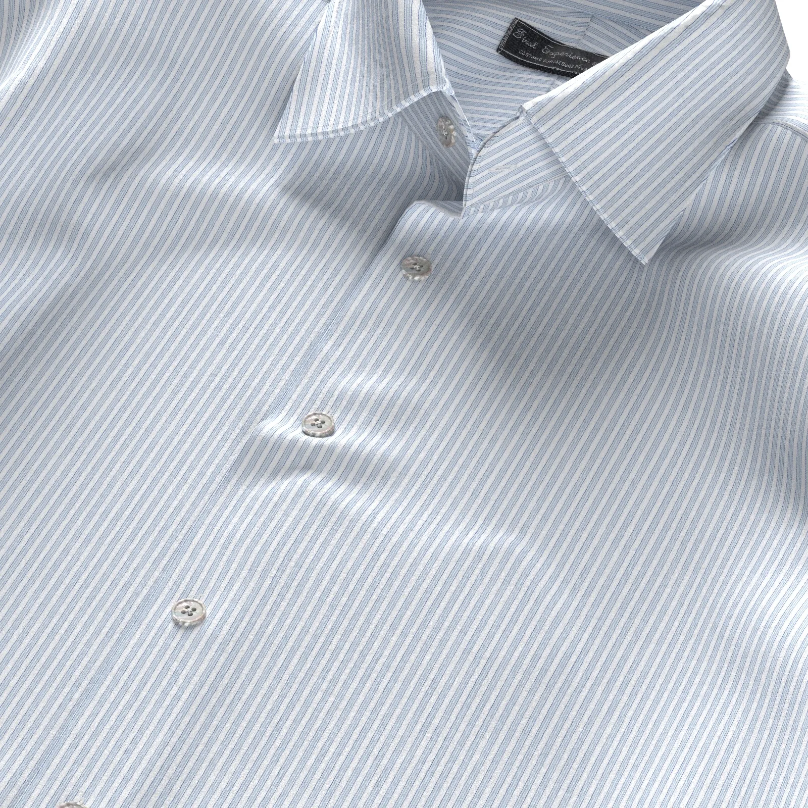 詳細イージーケア性に優れたCOOLMAX Eco Madeの細いブルーのグループストライプで高級感のある生地です。