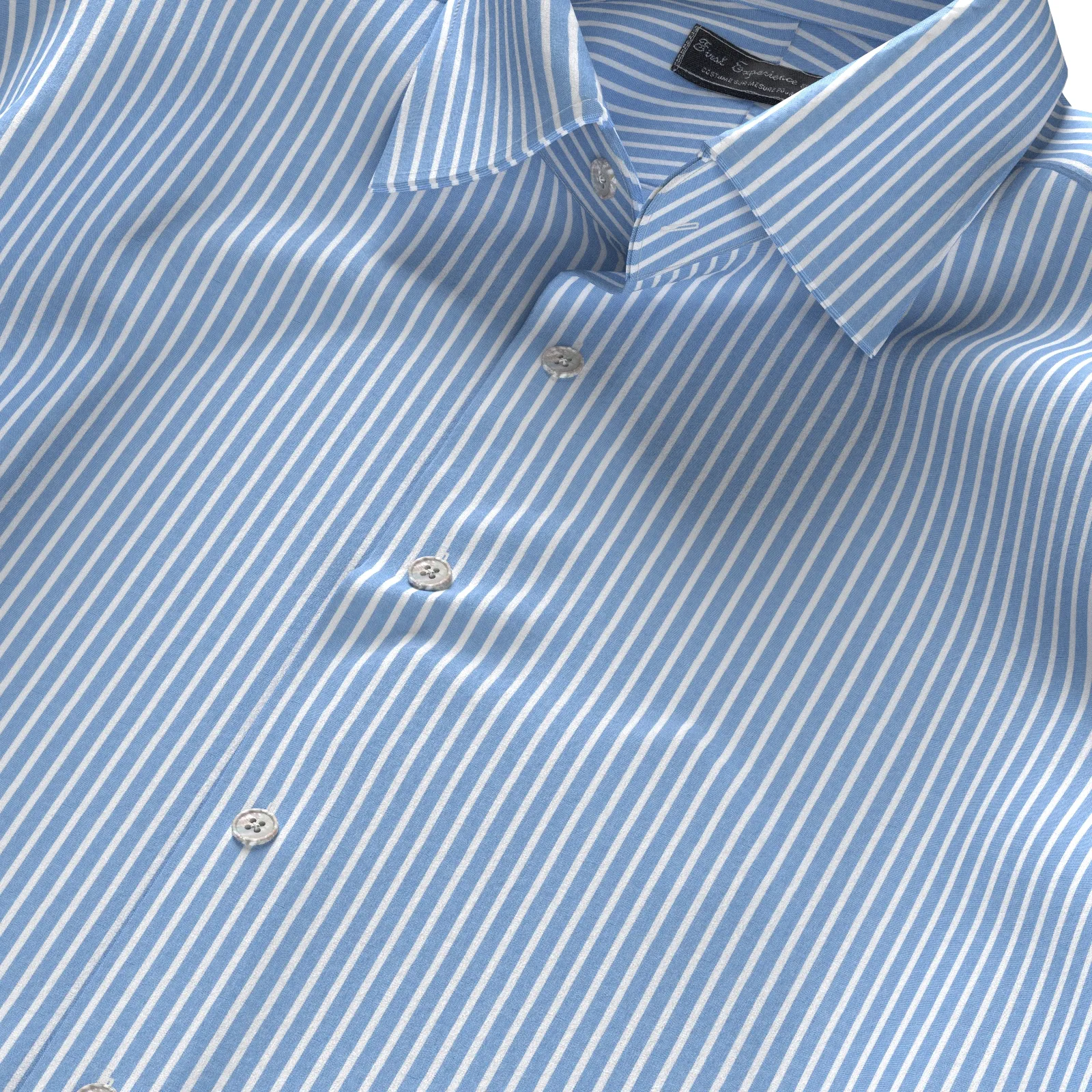 詳細イージーケア性に優れたCOOLMAX Eco Madeのブルー 白抜きストライプの高級感のある生地です。