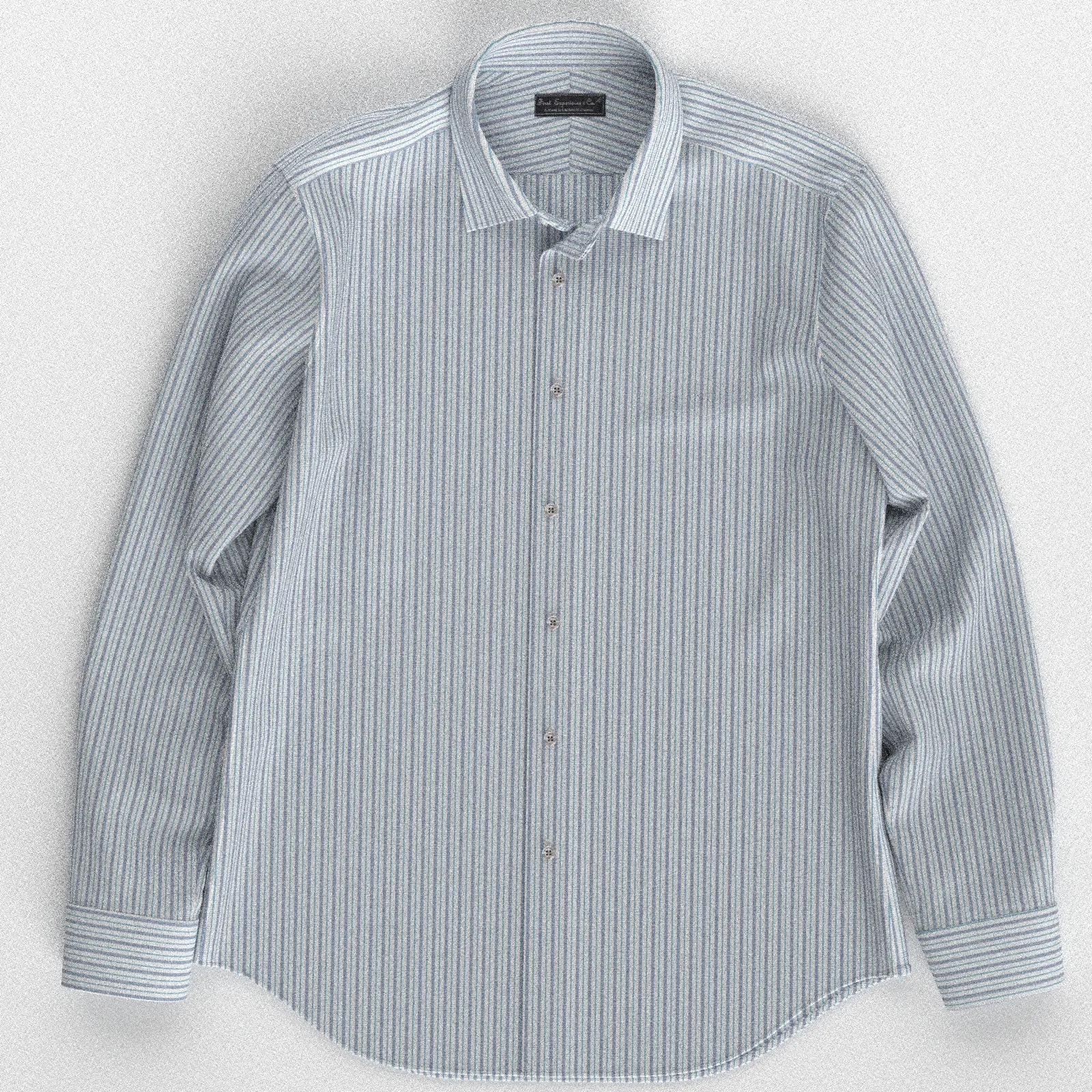 詳細上質で知られるGIZA96のサックスとネイビーの太さの異なるオルタネートストライプが入った100双糸生地です。