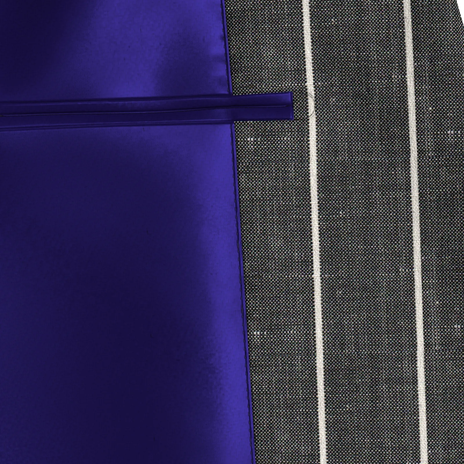 詳細ベーシックでストレッチ性のあるリネン混のグレーにホワイトのストライプ生地です。