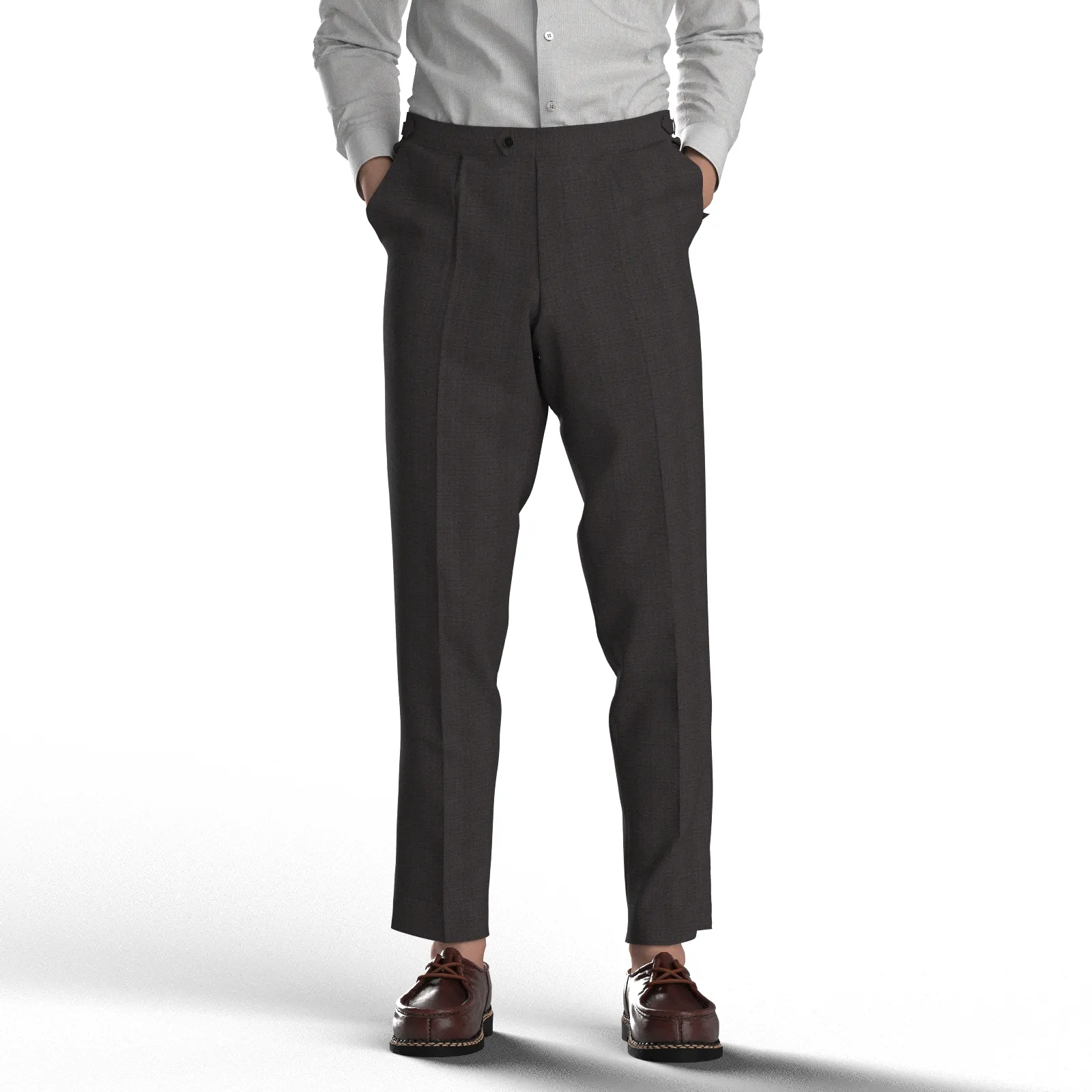 詳細ベーシックでストレッチ性のあるグレーのピンヘッドに同色ピンストライプ生地です。